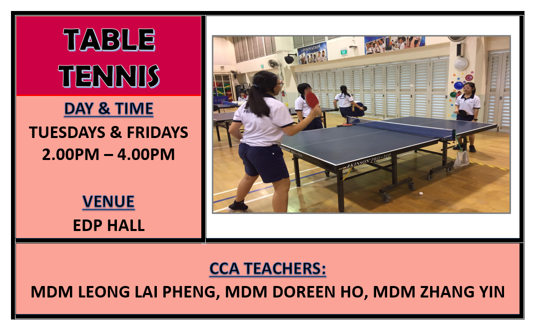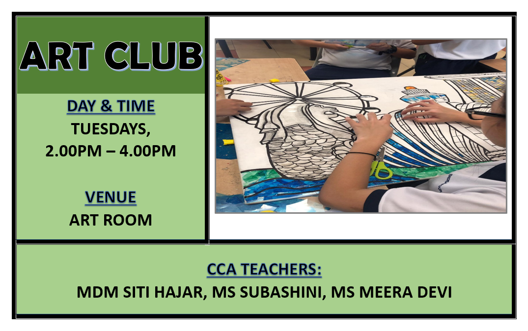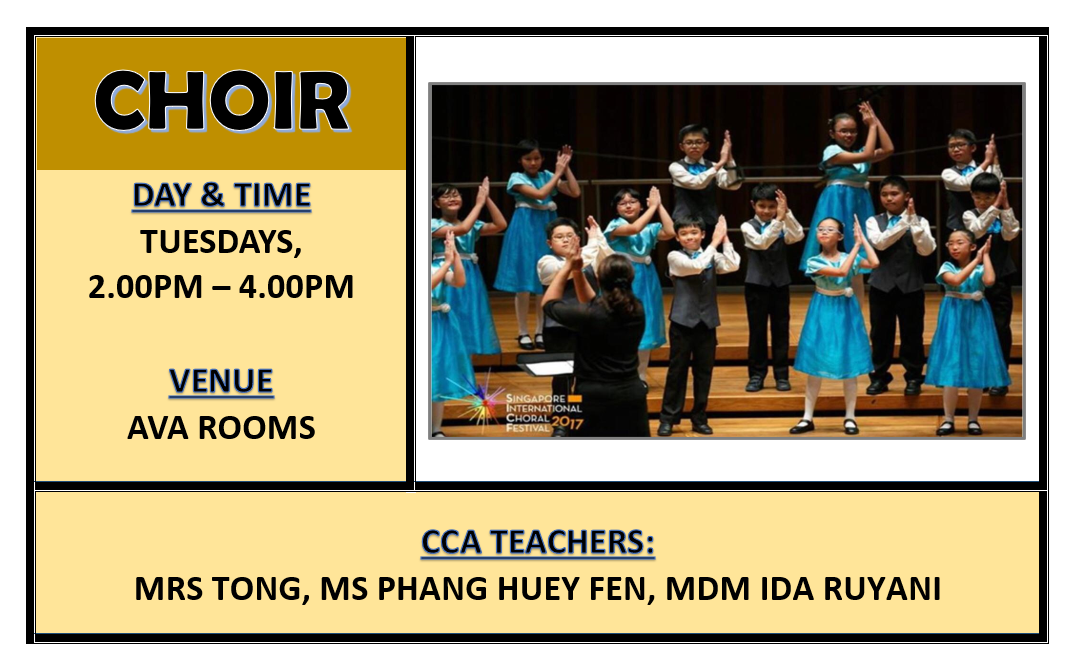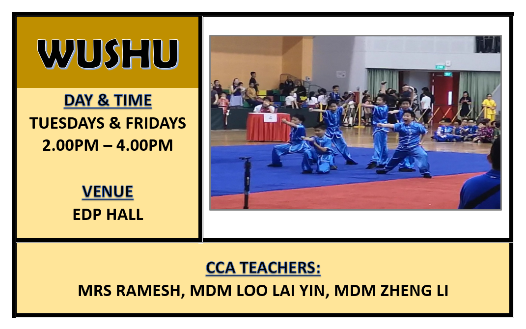 CCAs play an important role in developing our students holistically. Through CCA, students discover their interests and talents. Friendships are forged among peers from diverse backgrounds as they learn, play and grow together. At the same time, students develop values and 21st Century Competencies that will prepare them for a rapidly changing world. Participation in CCA fosters social integration and deepens students’ sense of belonging, commitment and sense of responsibility to school, community and nation.